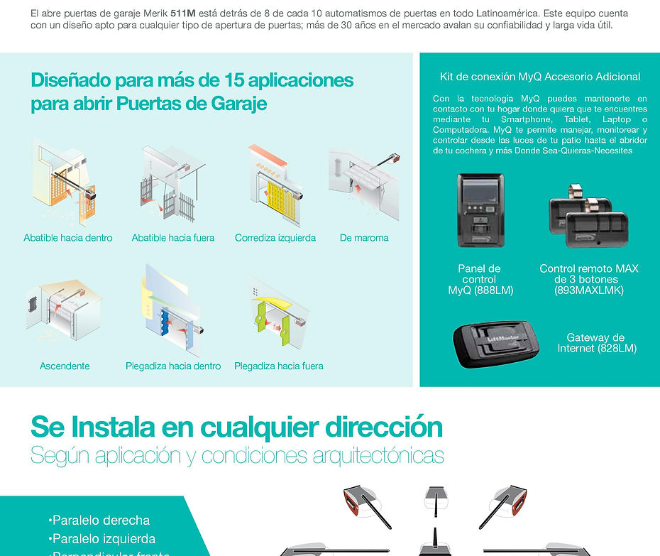 SISTEMA DE ABREPUERTAS CON IMPULSO DE CADENA Y RESPALDO DE BATERÍA TRAE INTEGRADO LA TECOLOGÍA MYQ, UN SISTEMA DE COMUNICACIÓN DE DOS VÍAS PATENTADO: POR MEDIO DE CONTROL REMOTO E INTERNET.